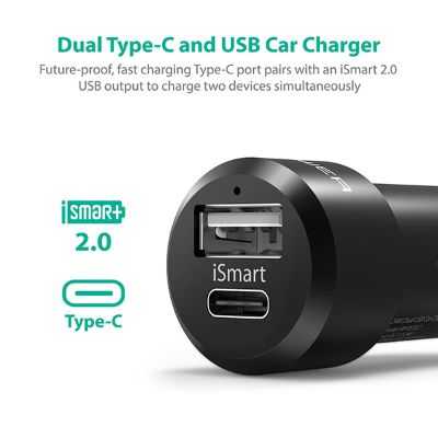 راف باور شاحن جوال للسيارة بمفذين (USB) و (Type-C)