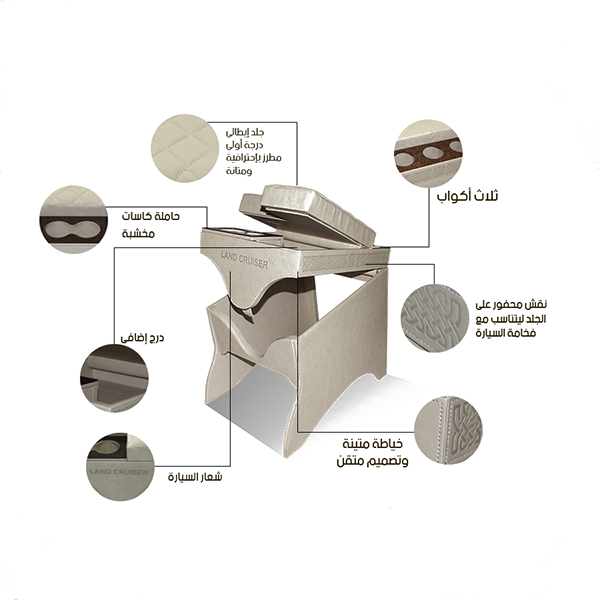 تكاية بثلاث أكواب خلفية لون بيج تويوتا لاندكروزر 2008-2021
