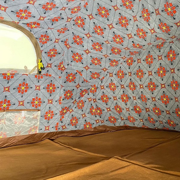 إرضية مقاومة للماء متصلة مع شراع الخيمة.
