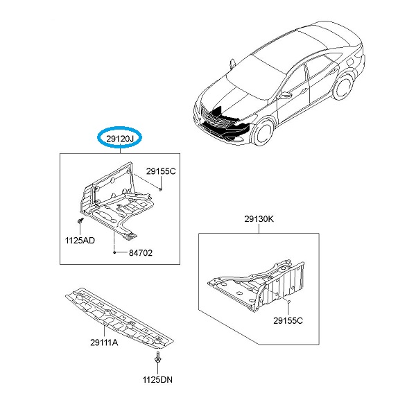 بطانة محرك سفلية يمين هيونداي أزيرا 2012-2016